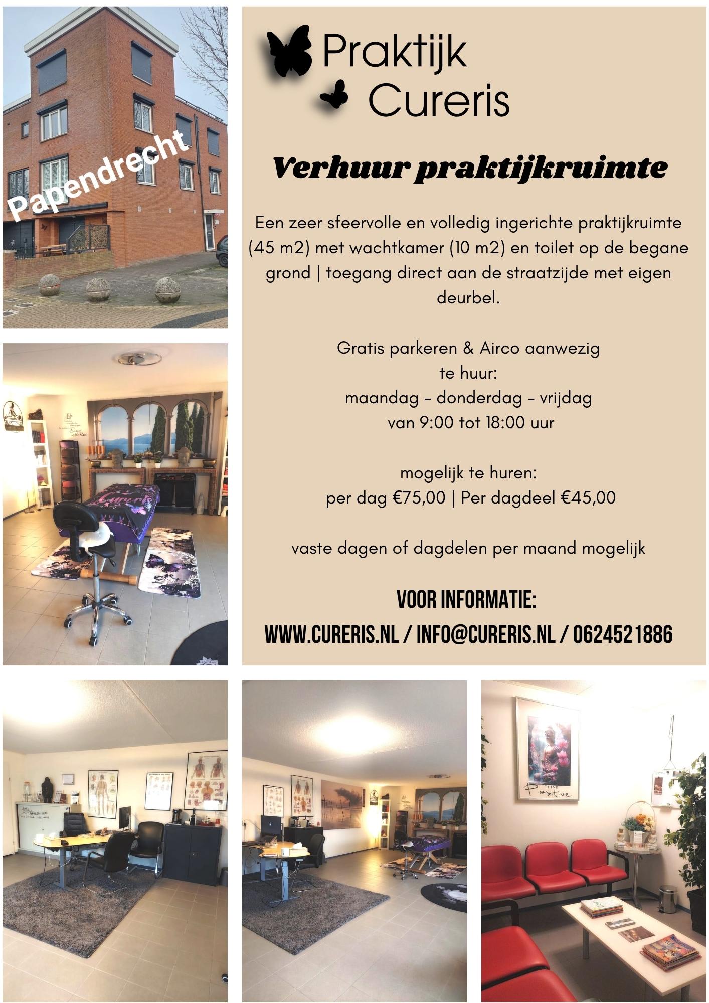 Bent u een masseur en zoekt u een rustige plek voor uw klanten? Praktijk Cureris biedt de perfecte oplossing: huur per dagdeel of dag, zonder verplichtingen of contracten. Ideaal om rustig op te starten of om uw praktijk uit te breiden zonder hoge vaste lasten.